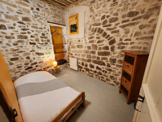 Ce gîte rénové sous ses voûtes croisées vêtues de blanc pour conserver la fraîcheur de nos étés torrides.