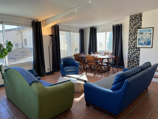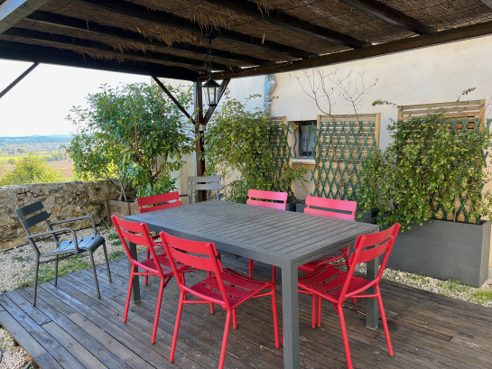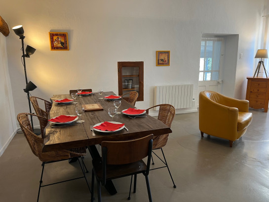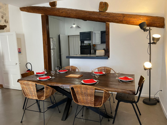 Le Gîte Syrah est composé d'une spacieuse pièce de vie avec un coin salle à manger, cheminée et cuisine ouverte, une sensation d'espace et de liberté.